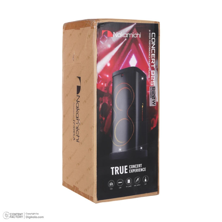 اسپیکر Nakamichi CONCERT 825 جدیدترین عضو از خانواده اسپیکرهای قابلحمل سری CONCERT است که با افزایش توان خروجی و امکانات صوتی پیشرفتهتر نسبت به مدل ۶۲۰ معرفی شده است. هدف اصلی در طراحی ۸۲۵ دستیابی به ترکیبی از قدرت صوتی، کنترل دقیق صدا و جلوه بصری حرفهای بوده است. با بدنهای بزرگتر و خروجی ۱۳۰ وات RMS، این مدل بهسمت استفاده نیمهحرفهای در محیطهای باز و گردهماییهای پر جمعیت متمایل است. در عین قدرت بالا، مصرف انرژی و مدیریت حرارت مدار امپلیفایر در آن بهینه شده تا پخش طولانی در کنار ثبات صوتی حفظ شود.