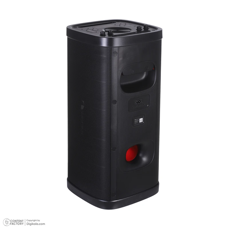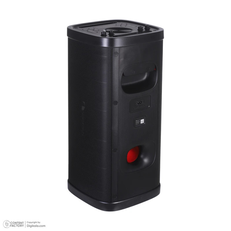 CONCERT 620 در ساختار بیرونی از بدنه پلاستیکی تقویت شده استفاده میکند که وزن را پایین نگه میدارد و در عین حال مقاومت مکانیکی کافی برای جابهجایی و ضربههای جزئی دارد. ابعاد دستگاه ۲۶۷x۲۷۰x۶۱۰ میلیمتر و وزن آن ۸.۶ کیلوگرم است؛ عددی که بهخوبی توازن بین قابلیت حمل و حجم آکوستیکی محفظه را نشان میدهد. بخش بالایی شامل دسته حمل یکپارچه و محل قرارگیری پنل کنترل است که با روکش پلاستیکی بافتدار پوشاندهشده و مقاومت خوبی در برابر رطوبت سطحی دارد. در نمای جلو، توری فلزی مشبک با فریم داخلی مات دیده میشود که از درایور اصلی در برابر ضربه و گردوغبار محافظت میکند. طراحی بدنه بر اساس چیدمان یک بلندگوی تمامبرد با ساختار Bass Reflex انجام شده است. در بخش پشتی دریچهی خروج هوای باس (پورت بیس) و محل ورودیهای USB، کارت حافظه و Audio In قرار دارد. نمایشگر کوچک دیجیتال در جلو، اطلاعاتی مانند میزان ولوم، وضعیت اتصال و حالت پخش را نمایش میدهد. نورپردازی جلویی تکرنگ است و با شدت ملایم تغییر رنگ میدهد تا در محیط تاریک جلوهای ساده اما هماهنگ ایجاد کند.