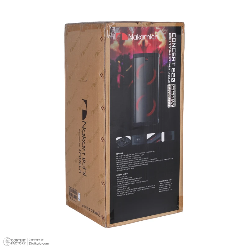 سری CONCERT از محصولات برند ناکامیچی در سالهای اخیر با تمرکز بر اسپیکرهای قابلحمل طراحی شده که با وجود ابعاد متوسط، عملکرد صوتی فراتر از کلاس خود ارائه میکنند. مدل CONCERT 620 که در دسته اسپیکرهای تکتکه قرار میگیرد، نسخهای سبکتر و کممصرفتر از مدل 820 محسوب میشود و برای کاربری خانگی، دورهمی و محیطهای نیمهباز طراحی شده است. تمرکز در این مدل بر بهرهوری انرژی، صدای تمیز و امکانات ارتباطی کامل است تا در عین وزن پایین، کاربر تجربهای حرفهای از صدای قابلحمل داشته باشد.