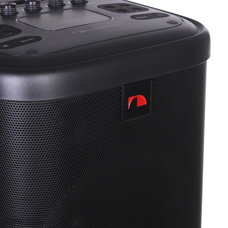درگاه شارژ از نوع USB Type‑C است و امکان شارژ مستقیم از آداپتور برق یا منبع انرژی خارجی را دارد. مدار داخلی دستگاه با وجود وزن زیاد و توان بالا، از رگولاتور حفاظتی جهت جلوگیری از داغشدن مدار تغذیه استفاده میکند. همچنین بخش رادیوی داخلی FM از طریق مدار آنتن مجتمع در برد اصلی عمل میکند و میتواند ایستگاههای محلی را با تفکیک مناسب دریافت کند. کنترل کامل این بخش از طریق ریموت کنترل بیسیم انجام میشود که در بستهبندی استاندارد دستگاه قرار دارد.منبع تغذیهی داخلی دستگاه یک باتری لیتیومی با ظرفیت ۳۶۰۰ میلیآمپر ساعت است که در شرایط ولوم متوسط بین ۴ تا ۵ ساعت پخش صوتی مداوم فراهم میکند. با توجه به توان نامی ۴۰ وات، این مدت شارژ منطقی است و نشان از بهینهسازی مدار پاور در سطح ولتاژ ۱۴.۸ ولت دارد. مدار شارژ از نوع Cut‑off Protection است که هنگام تکمیل ظرفیت، جریان شارژ را بهطور خودکار قطع میکند تا از استهلاک سلولها در استفادهی بلندمدت جلوگیری شود. قابلیت اتصال مستقیم به برق شهری نیز از طریق ورودی کابل برق همراه دستگاه وجود دارد؛ این امکان برای کاربریهای ثابت و جلساتی با پخش طولانیمدت کاربردی است.