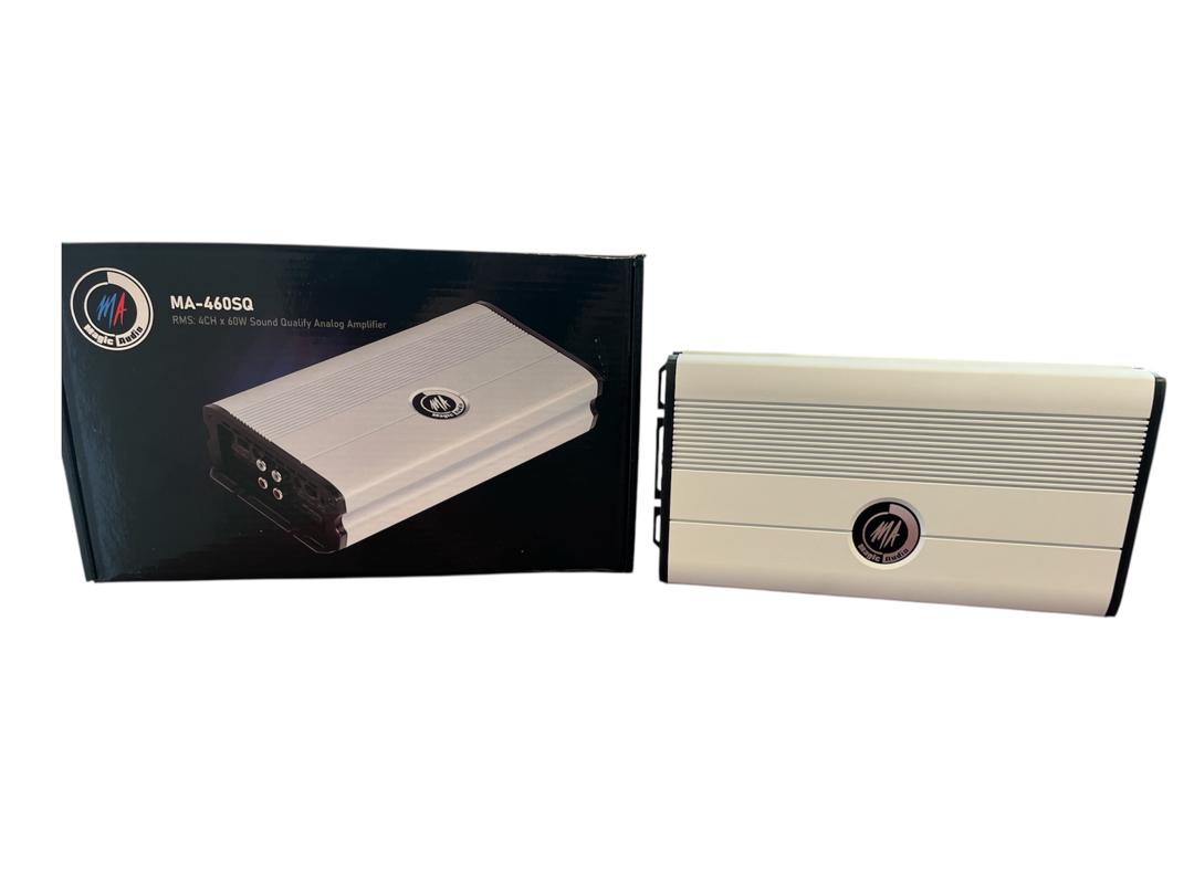 آمپلی فایر مجیک مدل MA-460SQ یک آمپلی فایر 4 کانال است که توسط برند مجیک آدیو تولید شده است. این آمپلی فایر دارای 4 کانال خروجی است که هر کدام 60 وات در 4 اهم توان دارند و در حالت پل زنی (Bridged) می تواند 180 وات در 4 اهم توان تولید کند.